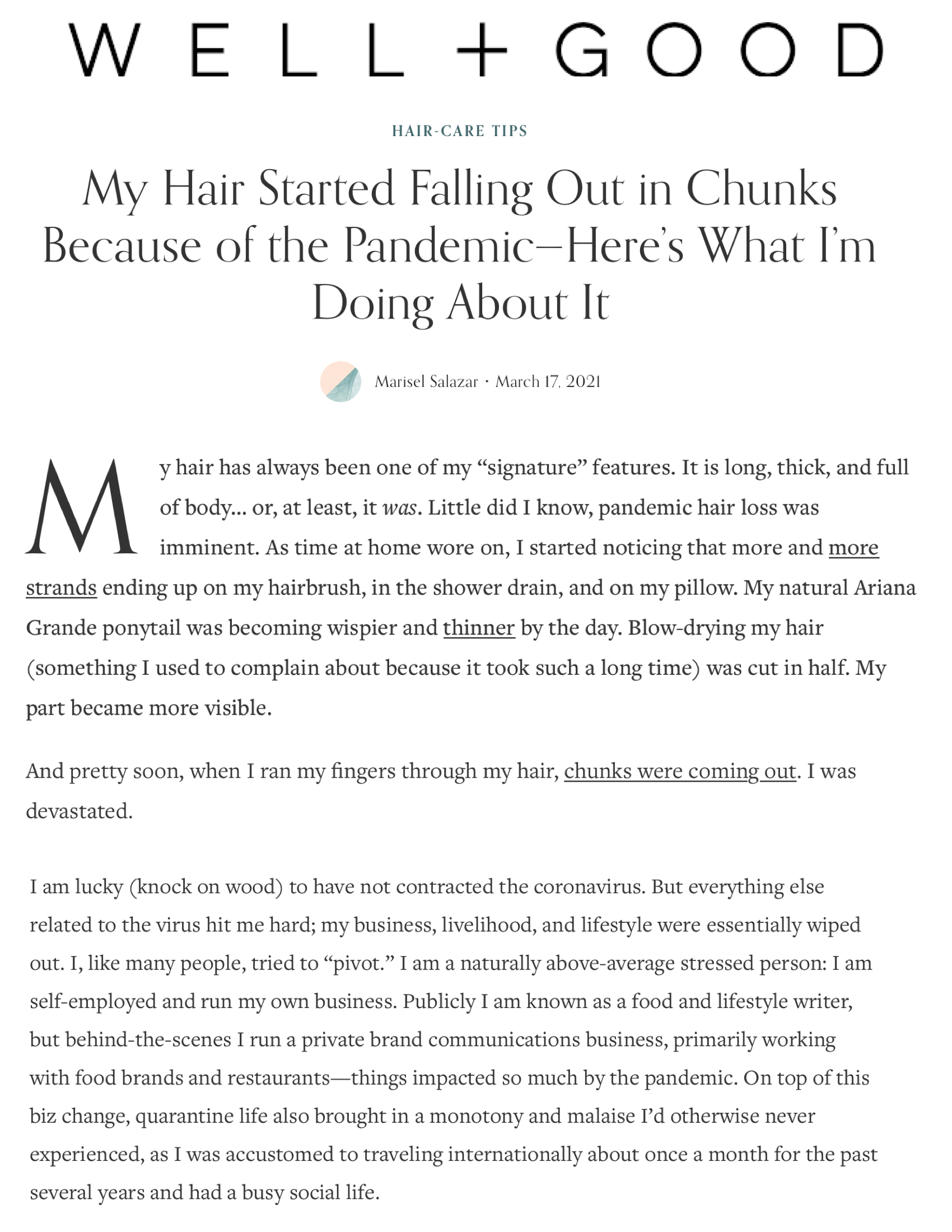 Well+Good: My Hair Started Falling Out in Chunks Because of the Pandemic—Here’s What I’m Doing About It